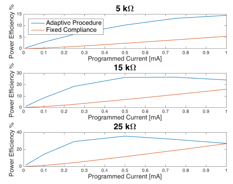 Typically, neural stimulators feature a high voltage supply, used to accommodate for changes at the output impedance. However, this means that when we need to drive low impedances or with low currents, there is an unnecessary voltage drop at the output, which leads to lower efficiencies. We can sense what is the real required output voltage and based on that adjust the power supply, thus creating a more efficient system, avoiding unnecessary losses.